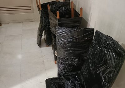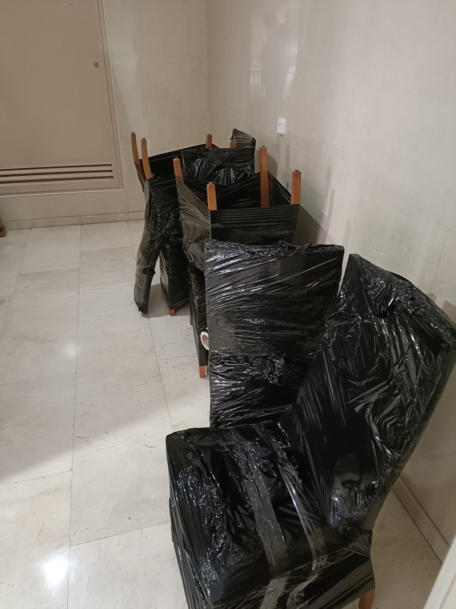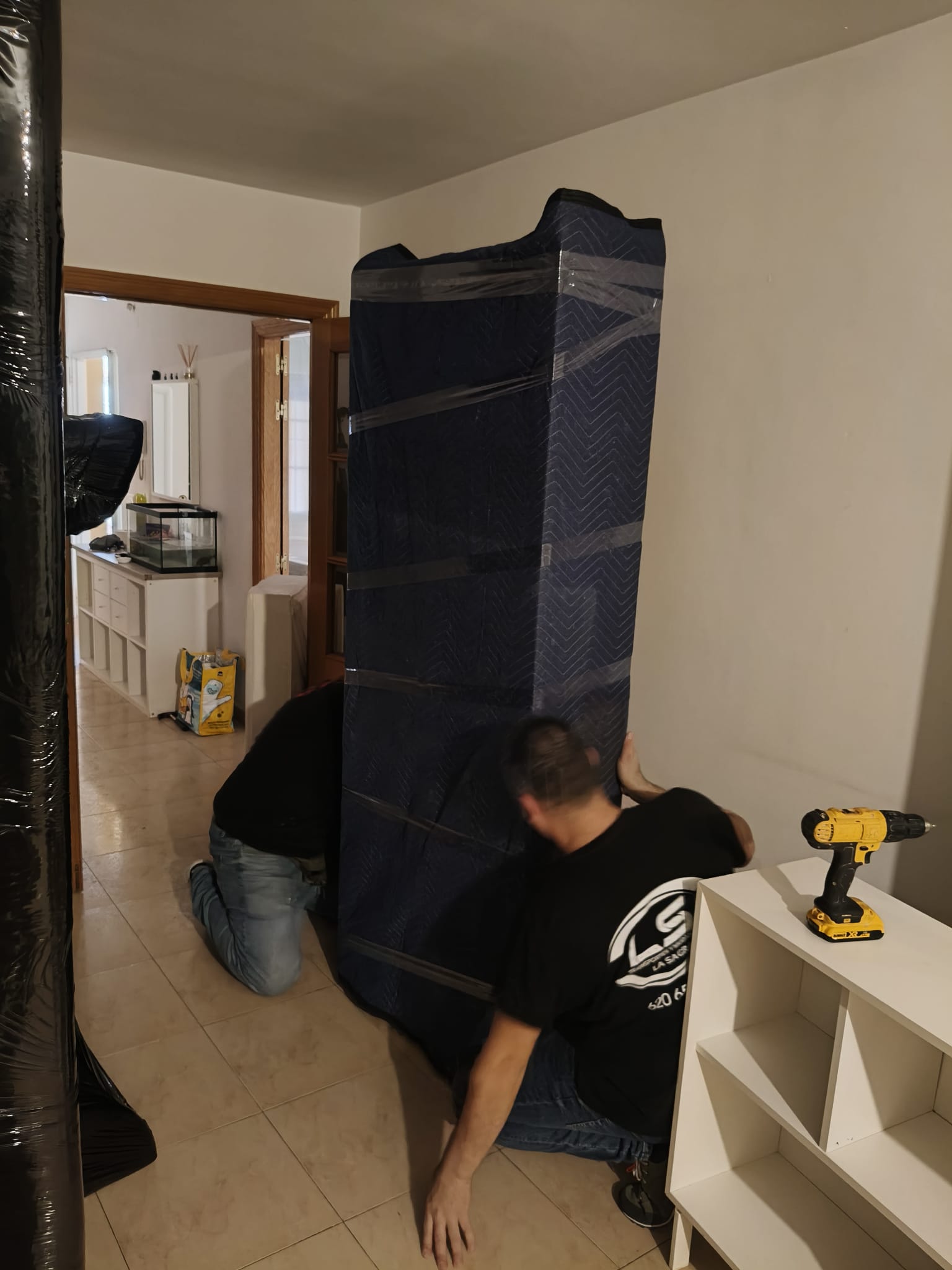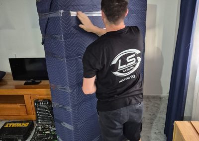 El cliente realiza el embalaje de los enseres y la empresa se encarga del desmontaje, protección y montaje del mobiliario incluido el trasporte de todo.
